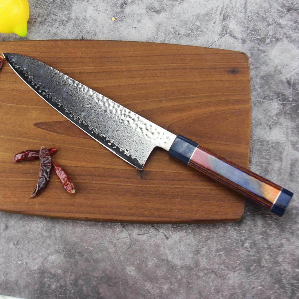 Seorang chef profesional cenderung memilih pisau Damaskus dengan bilah panjang dan pegangan ergonomis untuk kenyamanan jangka panjang.